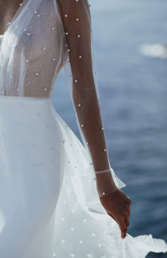 Pensée comme une création à la fois romantique et contemporaine, cette robe révèle un savoir-faire couture où chaque détail est maîtrisé, dans l’esprit libre et lumineux de la Maison Fabienne Alagama.